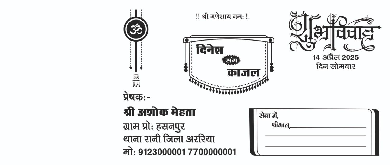 •Fancy hindu wedding card front and back printing black and white metter design cdr file